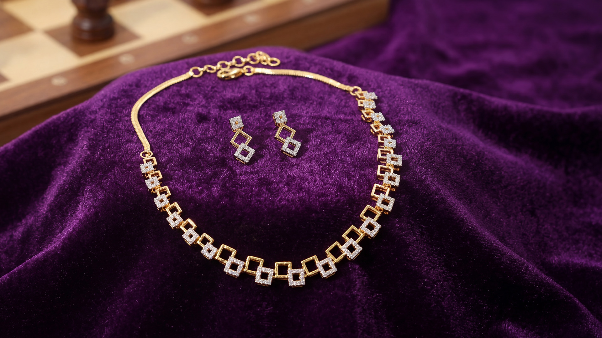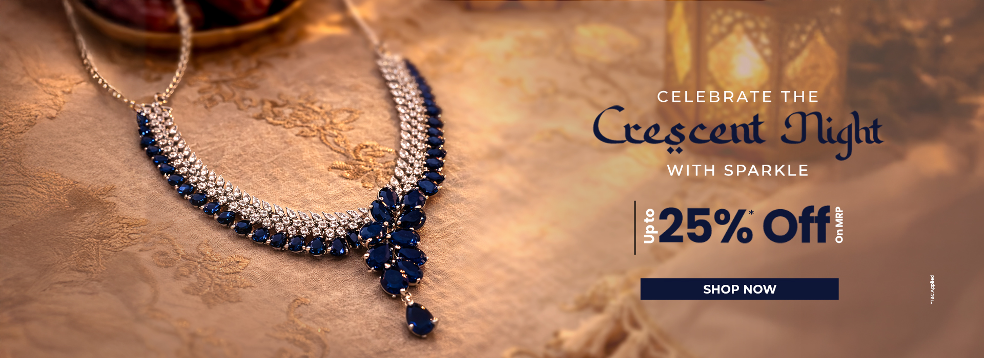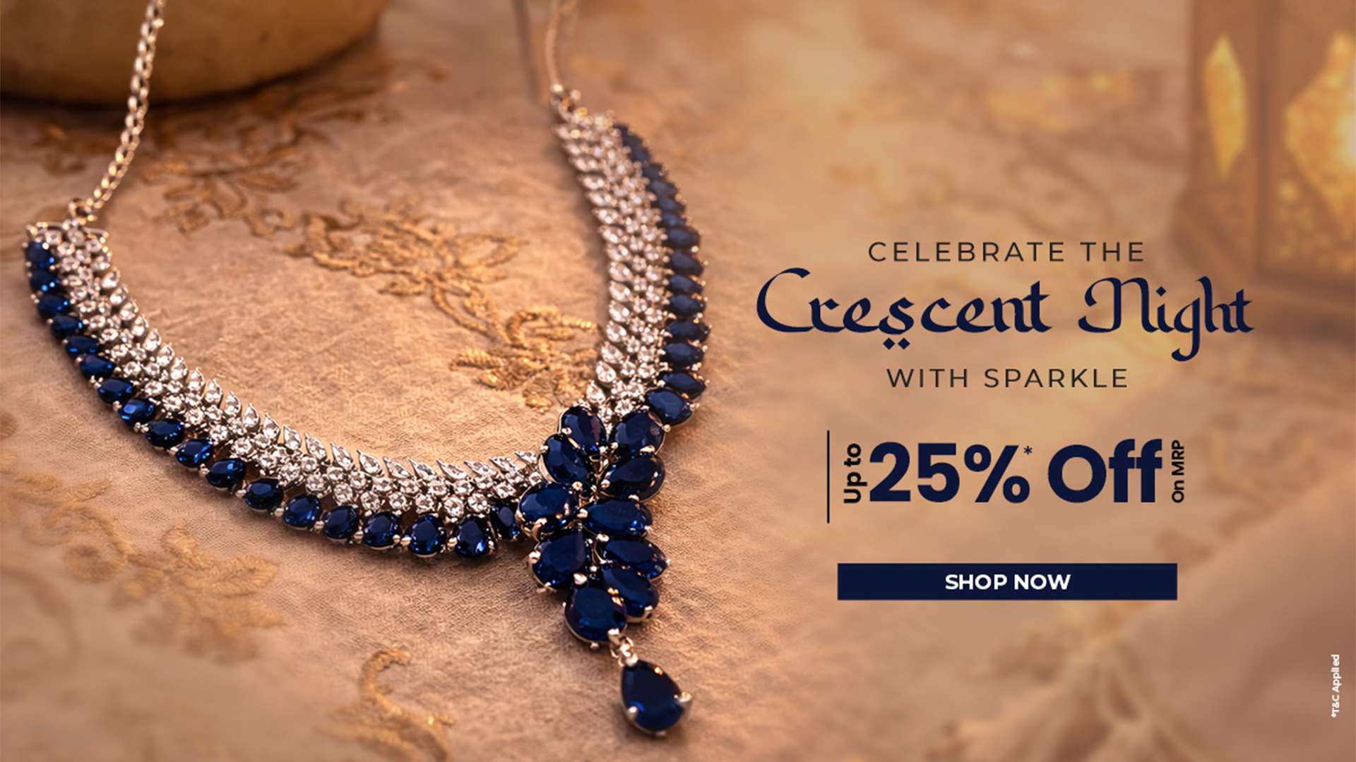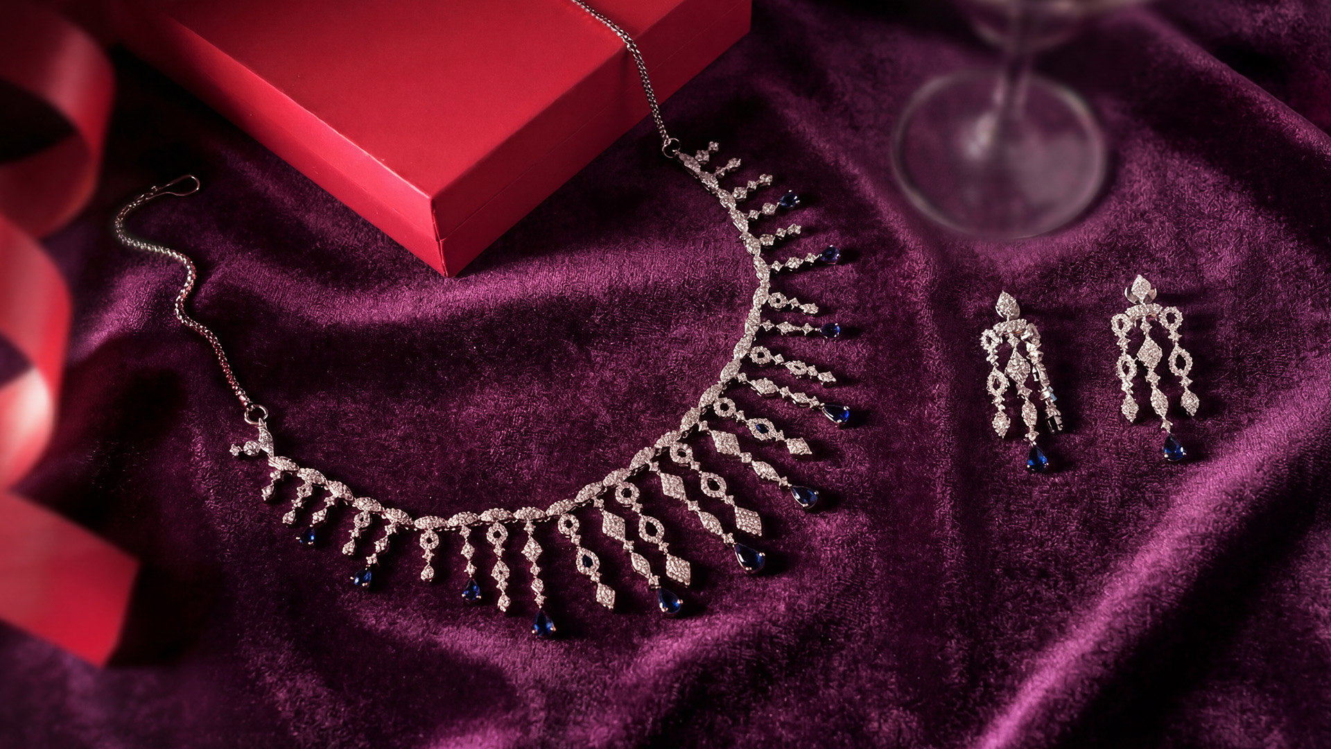 Embodying the beauty of the twilight hour, this necklace set is designed to complete your party look without looking overhyped. The array of American diamonds and stones in contrasting shades is perfect for a glamorous night out.